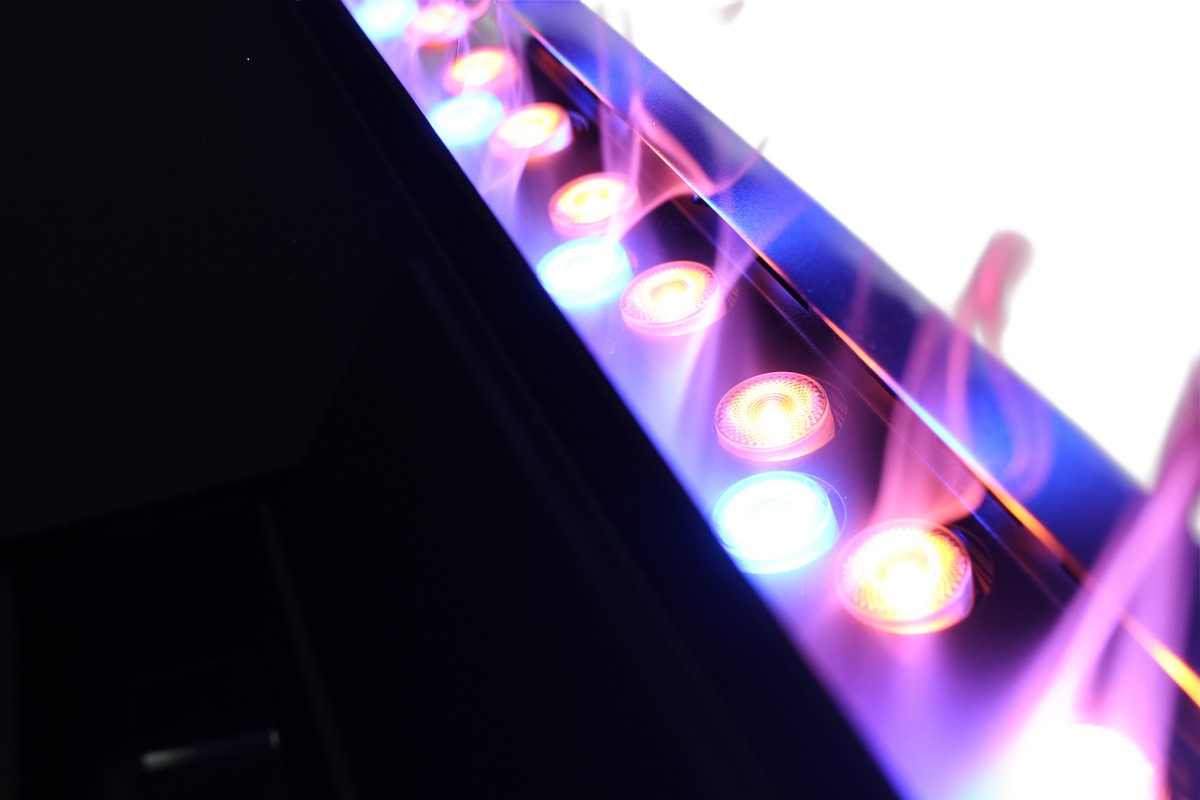 Широкий очаг Cassette с 3D эффектом живого пламени, дыма и звуком потрескивания дров. Рекомендуется для установки в подходящие порталы, ниши, дизайнерские конструкции. Работает на воде. Увлажняет воздух. Интенсивность дыма регулируется. Вместо дров установлена минималистичная черная панель их которой «горит огонь». Есть пульт ДУ. Без обогрева.