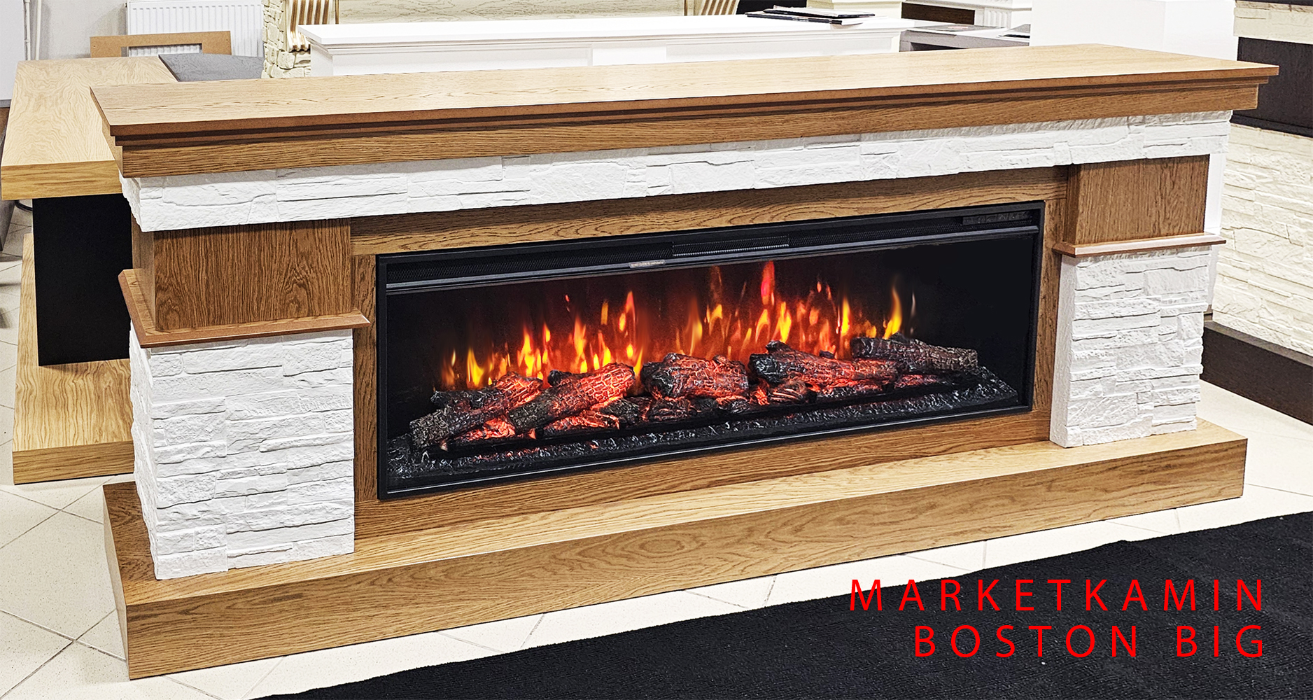 Бостон Биг (медовый дуб, белый сланец) широкий очаг 50″ Цвет и отделка на выбор. Габариты (ШxВxГ): 2100х850х390 мм