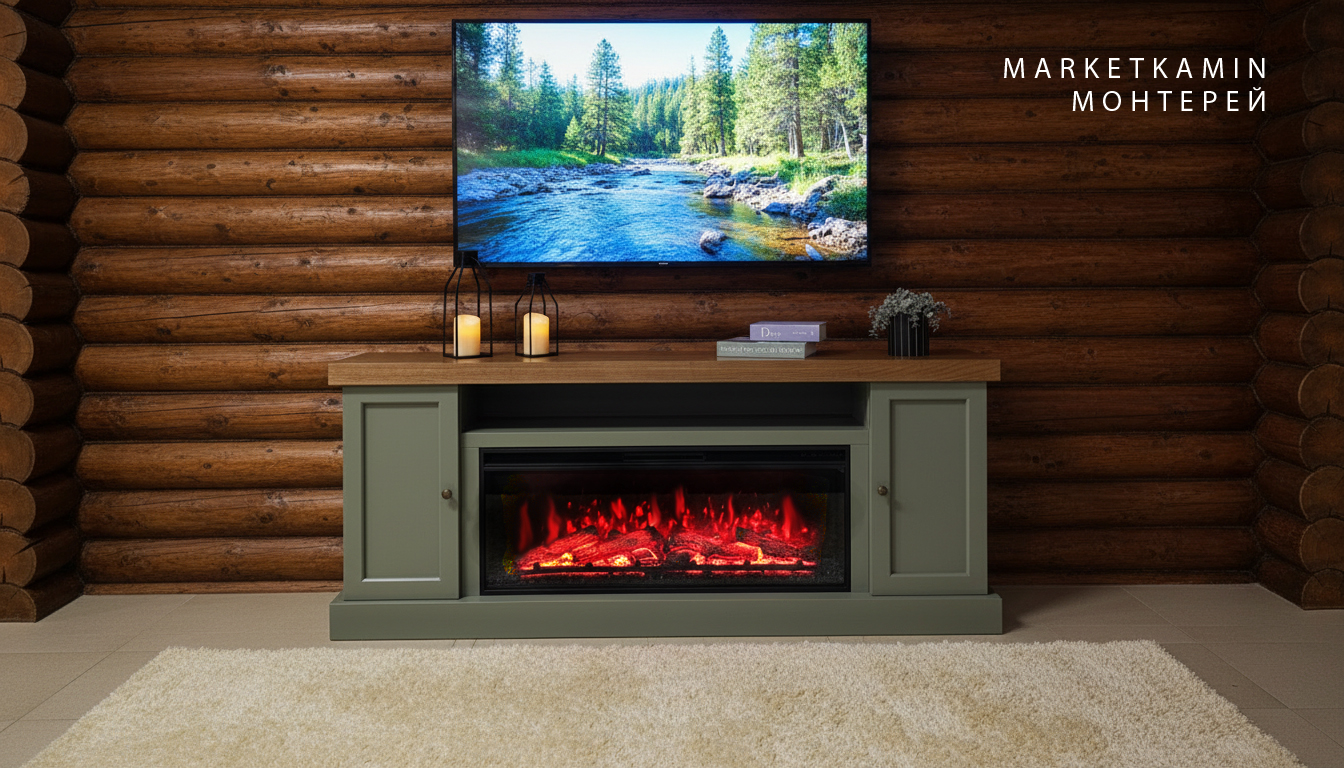 Цена за комплект с LED очагом 45 дюймов: 130000 руб Современный очаг на ярких светодиодах. Топка закрыта стеклом. Эффект пламени: пылающие поленья, которые сделаны по слепку настоящих дров. Реалистичное мерцающее пламя с регулировкой яркости и цвета. Работает в декоративном режиме и на обогрев. Обогреватель с функцией «климат-контроль» спрятан в верхней части очага, обеспечивает обогрев в холодную погоду, а что самое главное – не сжигает кислород в помещении! Действительно реалистичный звук потрескивания дров. Управление функциями очага производится на панели на корпусе или с пульта ДУ.