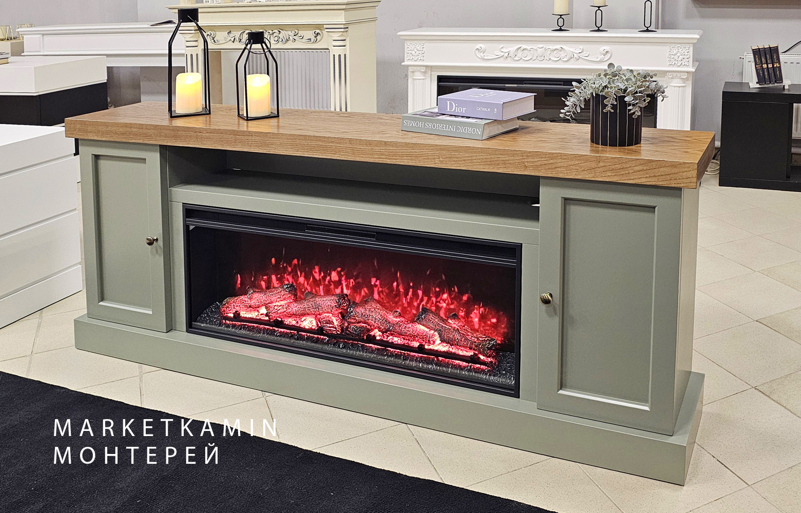 Монтерей 190 с дверками и открытой полкой (дуб/эмаль) Очаги на выбор (LED/3D открытый с увлажнением) Габариты (ШxВxГ): 1900х800х300 мм