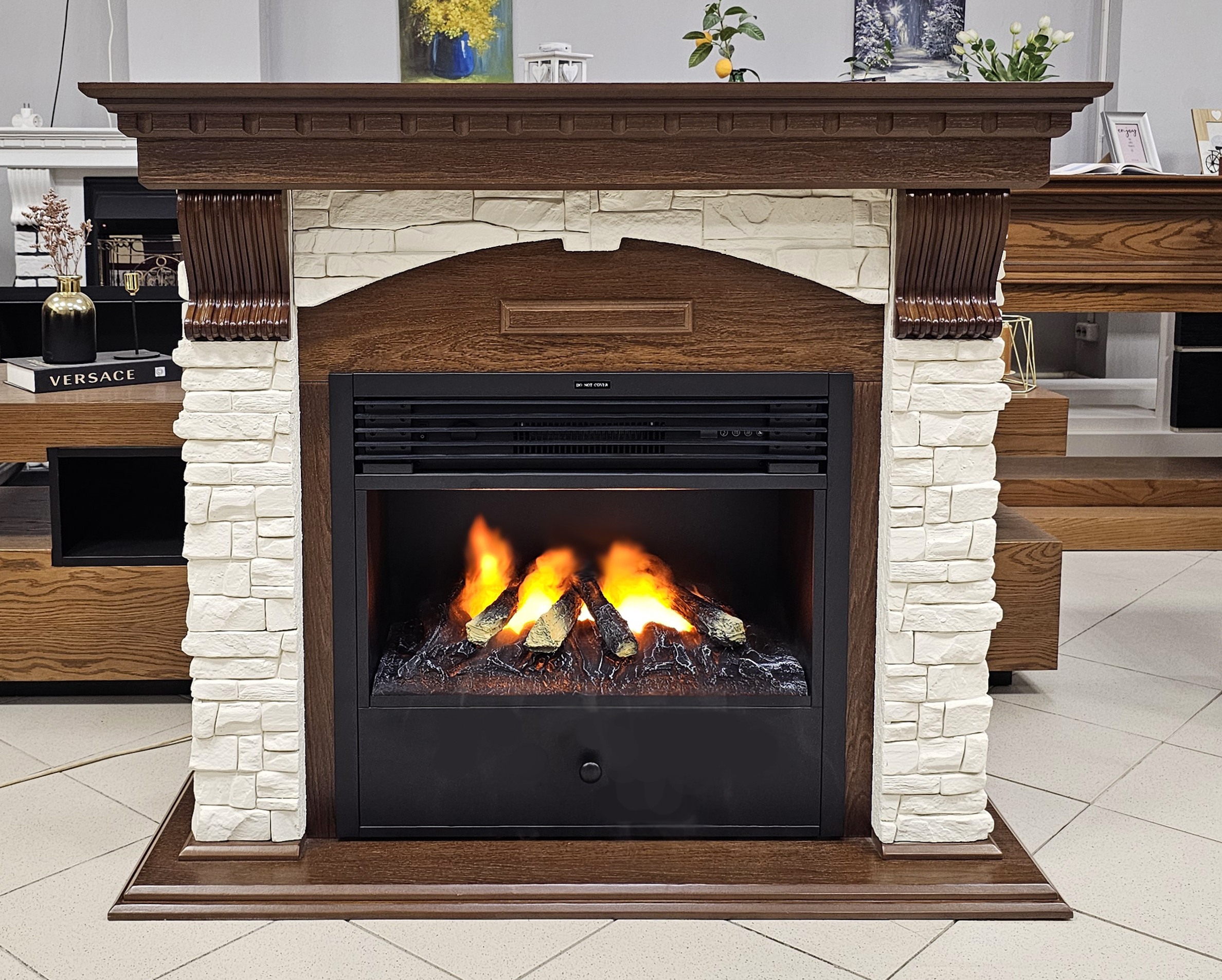Цена за комплект с очагом 3D 650: 147000 руб.   Обновлённый очаг  с эффектом живого пламени и дыма. Жаркие, мерцающие поленья. Густой эффектный дым, интенсивность которого можно регулировать. Работает на воде.  Выполняет функцию увлажнителя воздуха. Работает в декоративном режиме и с обогревом. Мощность обогрева 0,75/1,5 кВт. Звук потрескивающих поленьев. Пульт ДУ.