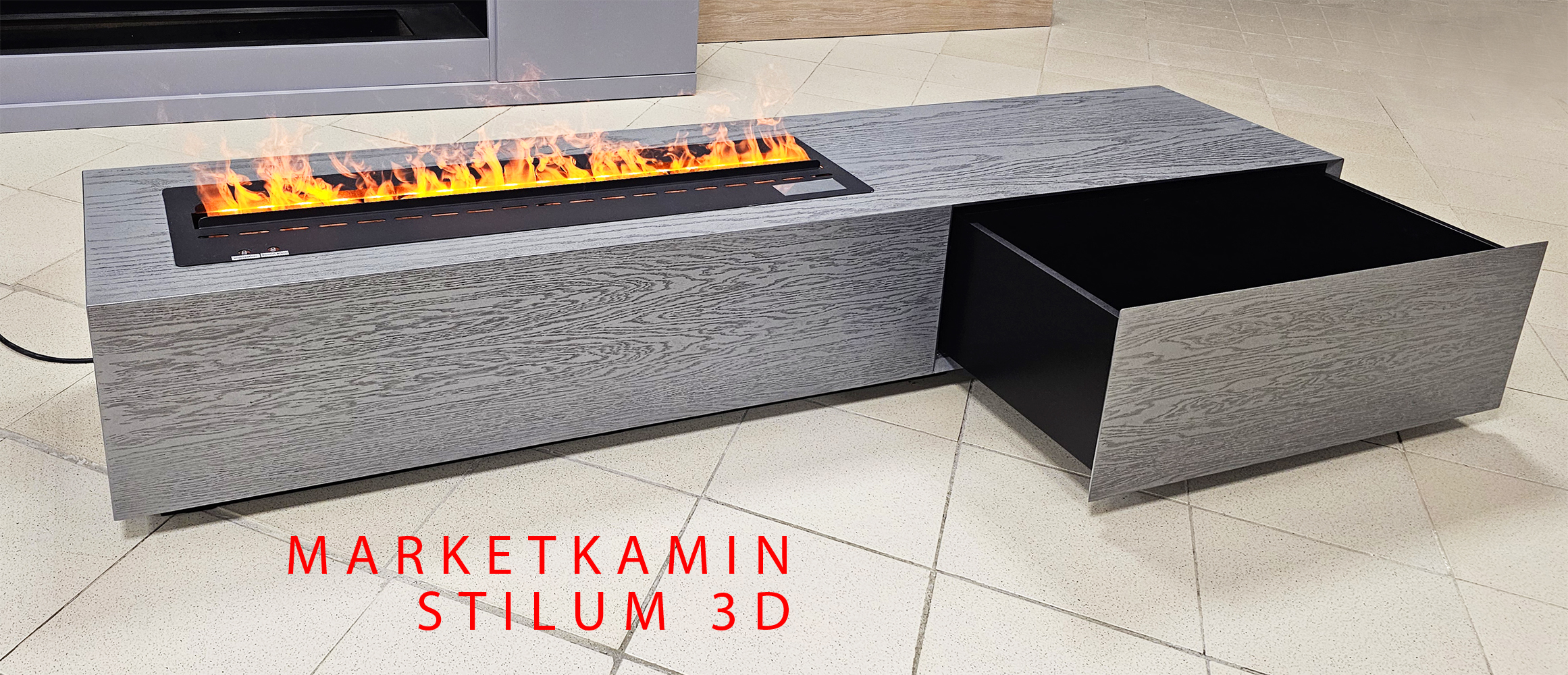 STILUM (стилум) ТВ-тумба с камином (серебряная эмаль с тёмной патиной по шпону дуба) Варианты с разными очагами в описании Габариты (ШxВxГ): 2000х400х400 мм