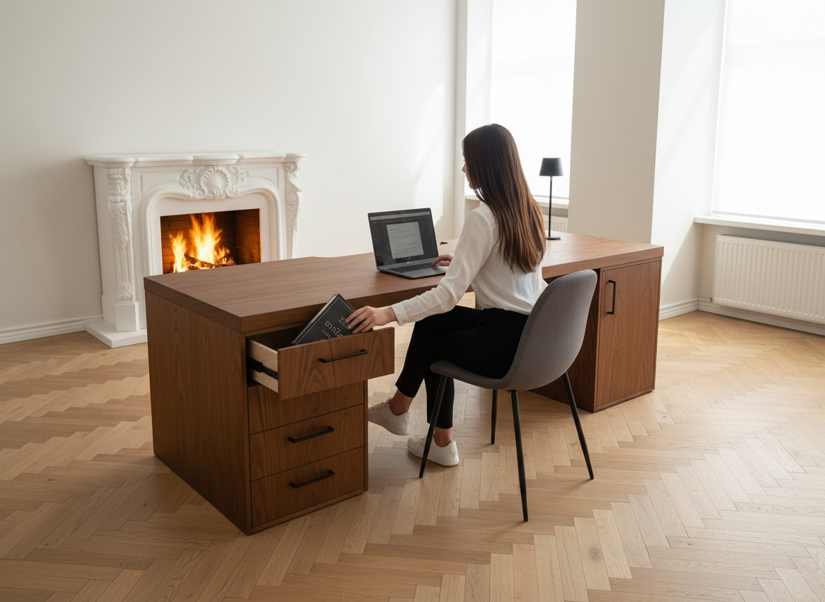 Современный письменный стол со стильным дизайном. Идеально подходит для рабочего места, домашнего офиса, кабинета руководителя.